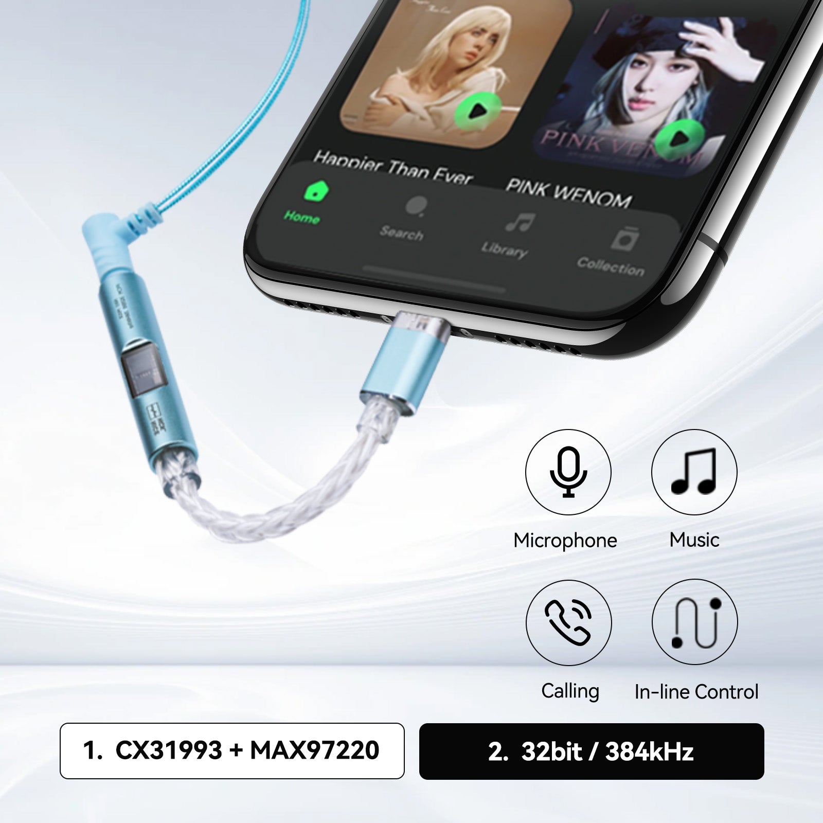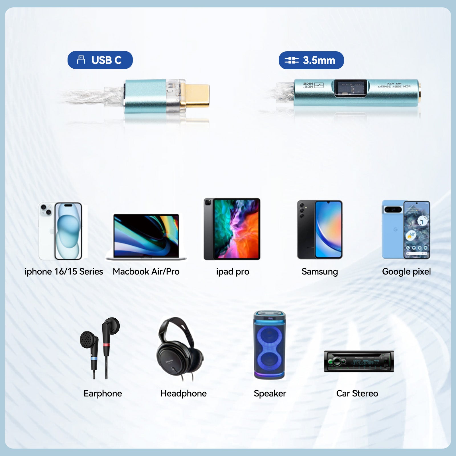 NICEHCK NK1 MAX USB C to 3.5mm Audio Adapter - Type C to Aux DAC Dongle, Silver-Plated OCC, Supports Mic/Volume Controls, HiFi Amp for Android & PC
