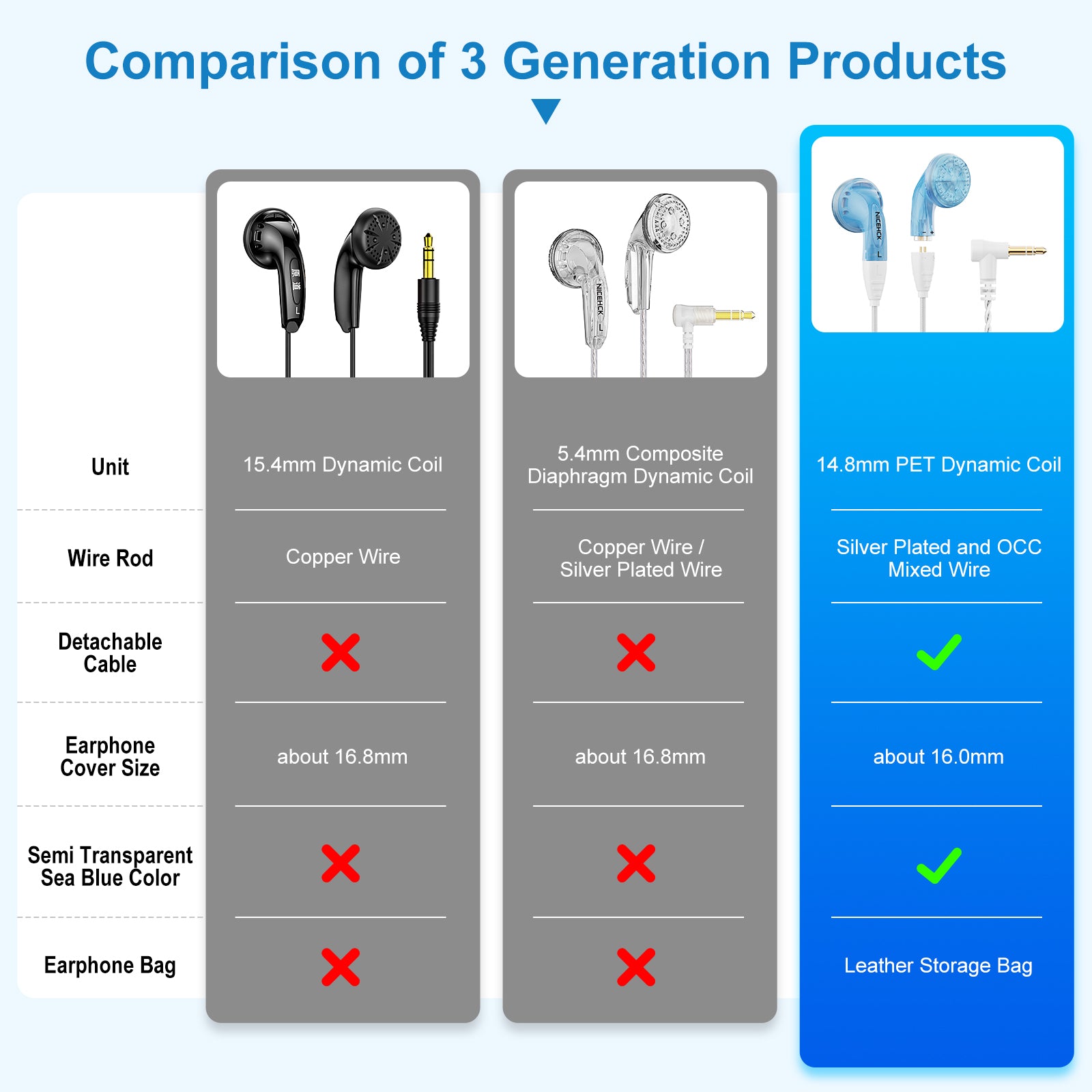 【착용 경험 업그레이드 및 3가지 색상 제공 】 편안한 착용감은 사용자 경험을 향상시키는 중요한 요소입니다. 따라서 우리는 YDX 케이스의 크기를 원래 16.8mm에서 16.00mm로 줄였고 비용을 아끼지 않고 헤드폰 케이스를 ABS 소재와 UV 광택으로 장식했습니다. 또한 핑크, 블루, 투명 3가지 아름다운 색상 옵션을 제공합니다 .